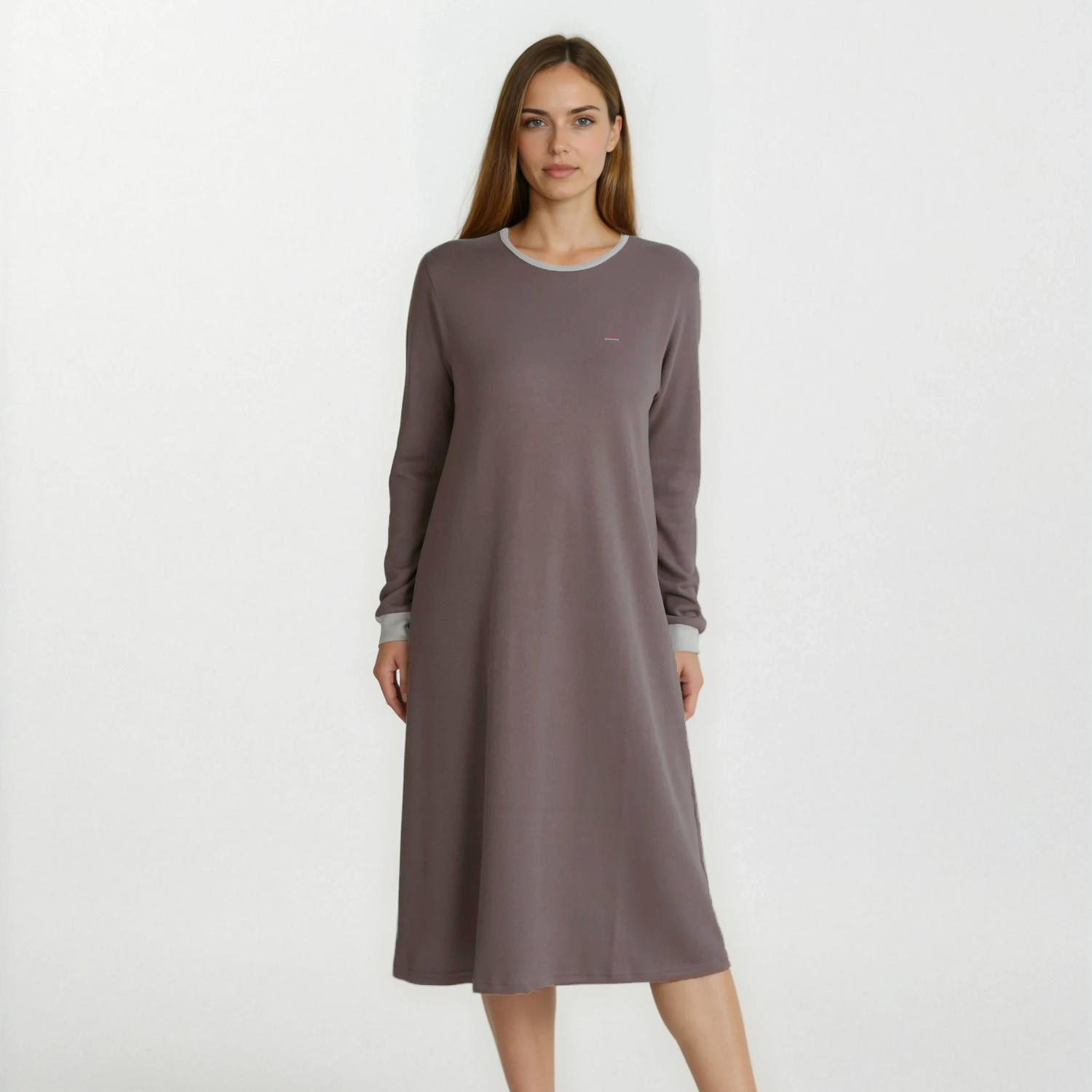 Pohodlná teplá noční košile, kterou můžete nosit také jako domácí oblečení. Vyrobeno z bavlny a modalu.
