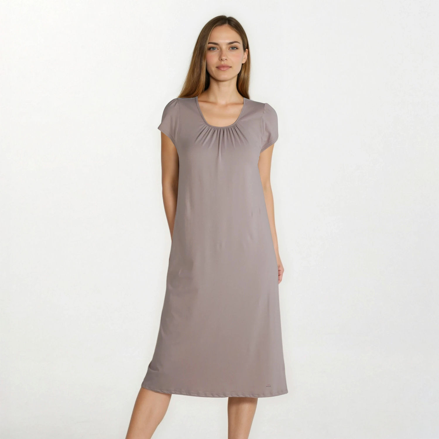 We designed this nightgown for you from a unique blend of cotton, linen, and Roica — Japanese elastane.